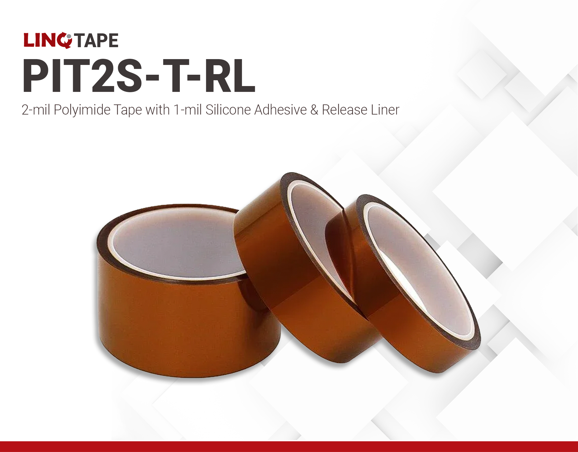 LINQTAPE™ PIT2S-T-RL is a 2-mil thick polyimide film with a thin 1mil silicone pressure adhesive. This adds up to a total thickness of only 3 mil (76.2µm); something that ensures excellent adhesion and mechanical strength at high temperatures.