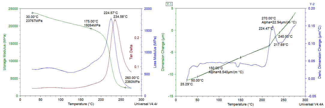 DMA Storage Modulus at 260C | MPa | 6491 | 1883 | 1658 | 1713 | 1711 | 907 | 1007 | 961 | |